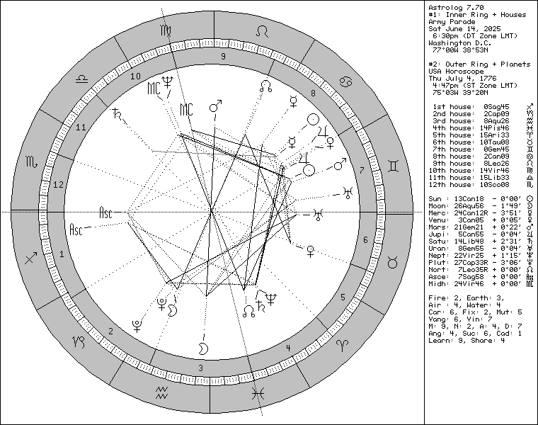 Comparison for USA Horoscope and June 14, 2025 Aspects