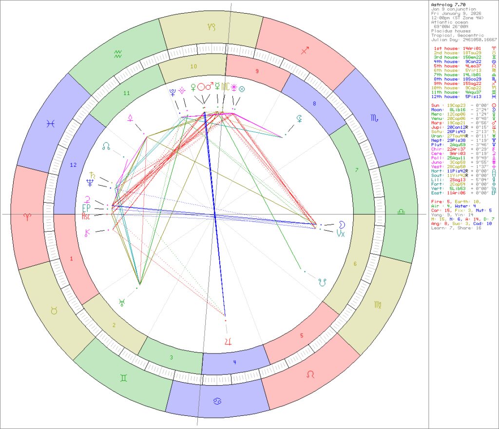 January 9, 2026Sun/Mars 19° Capricorn square Chiron 15° AriesCritical pressure on buried land; potential symbolic or literal exposure of Atlantis