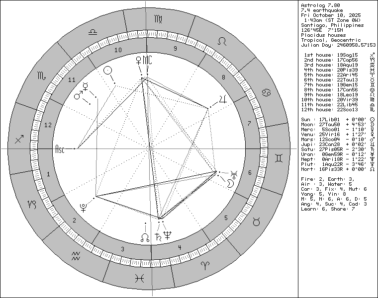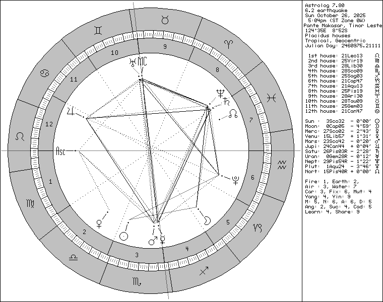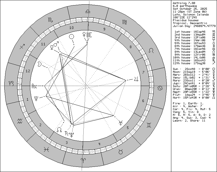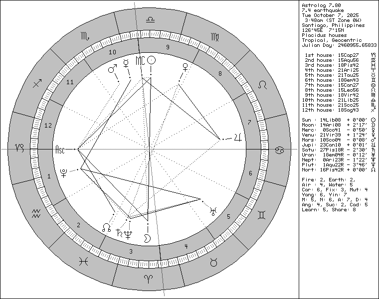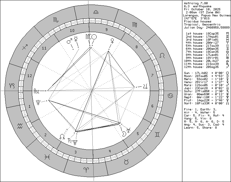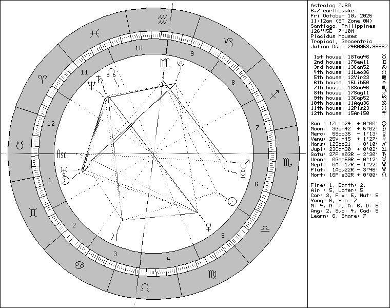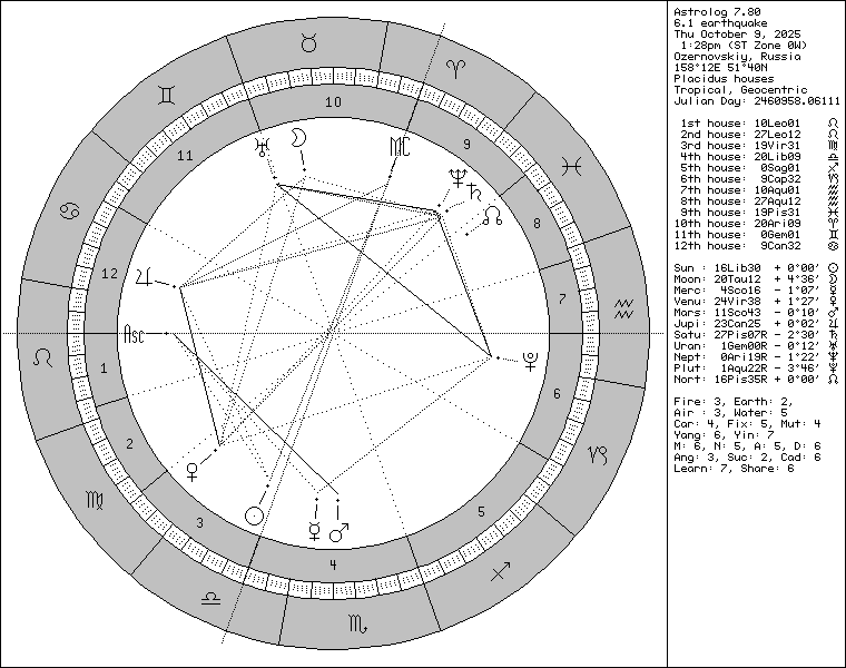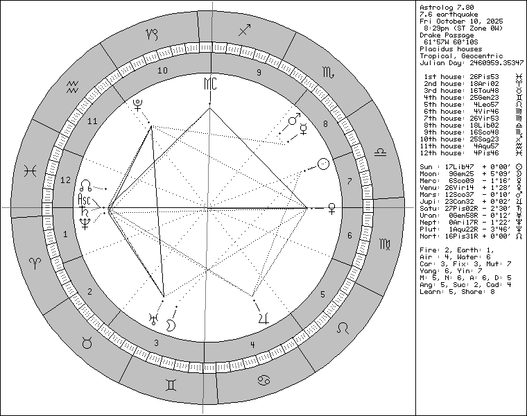Earthquake predictive Sun/Moon chart criteria as of October 14, 2025: