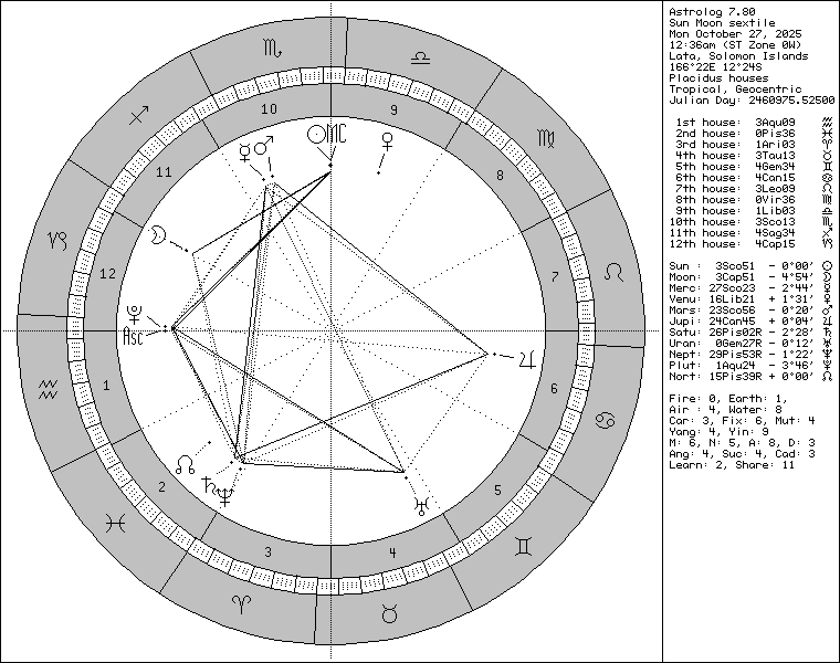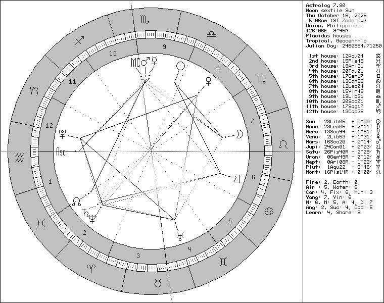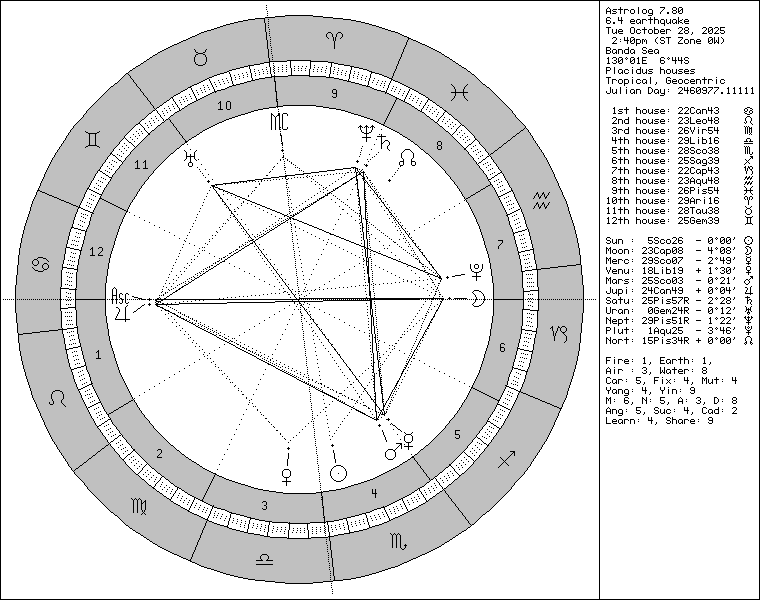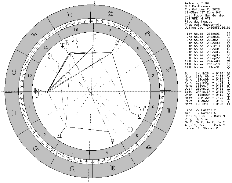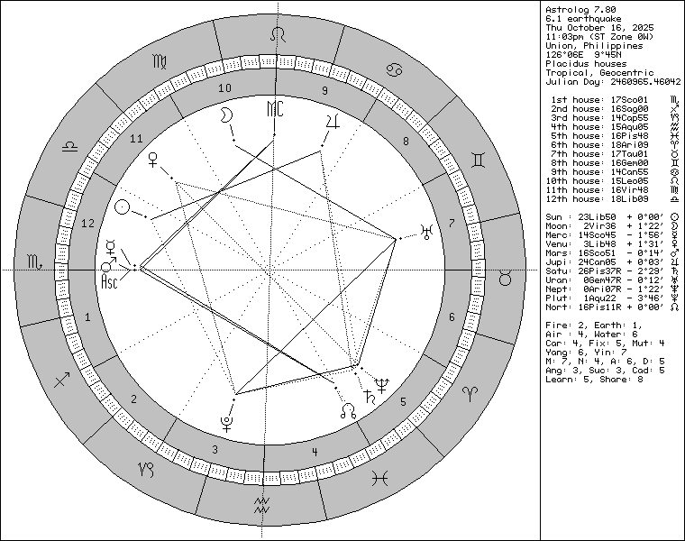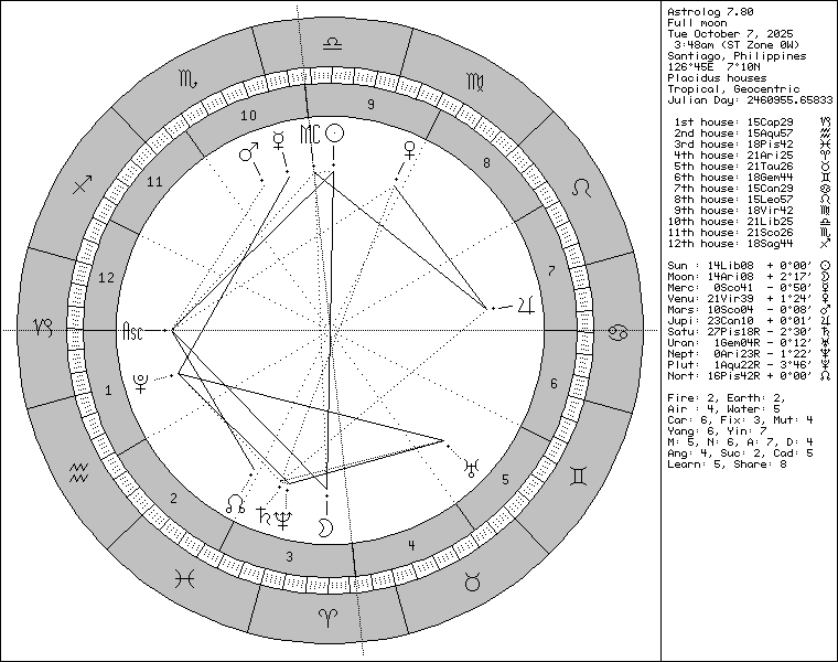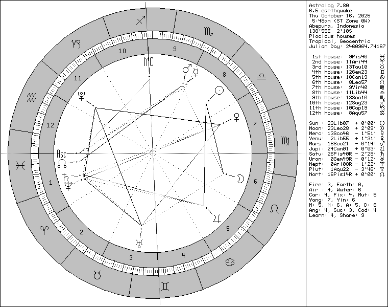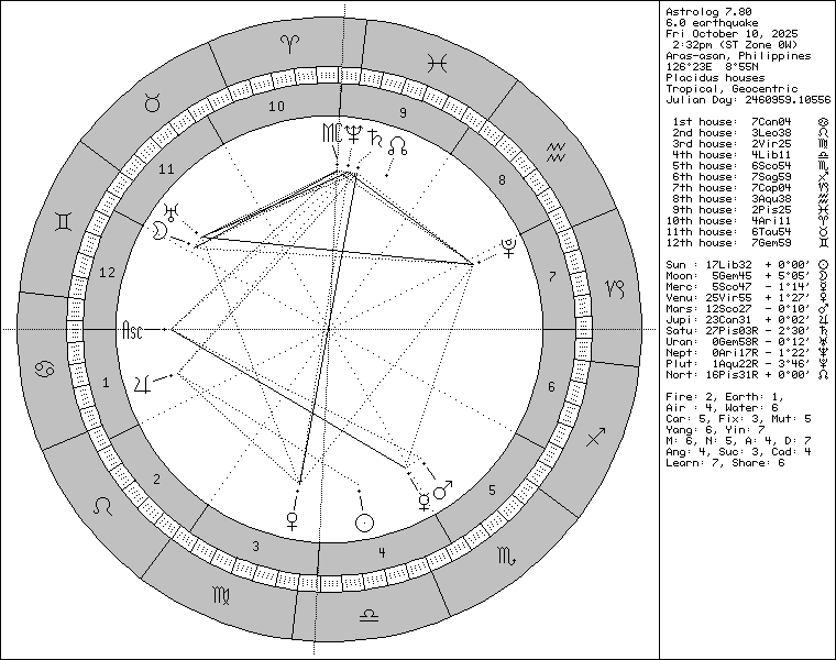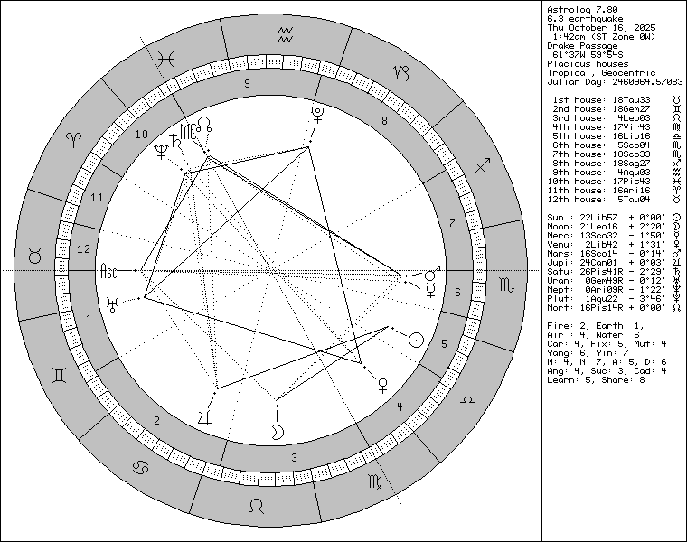 Earthquake predictive Sun/Moon chart criteria as of October 14, 2025: