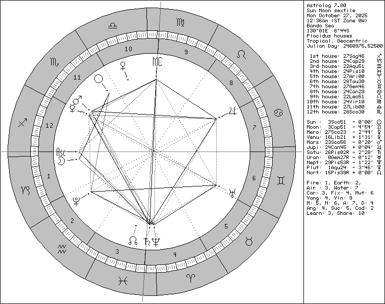 Moon sextile Sun chart for Banda Sea longitutude/latitude.