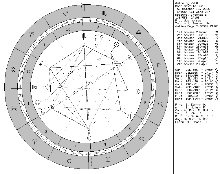 Moon sextile Sun chart for Abepura longitutude/latitude.