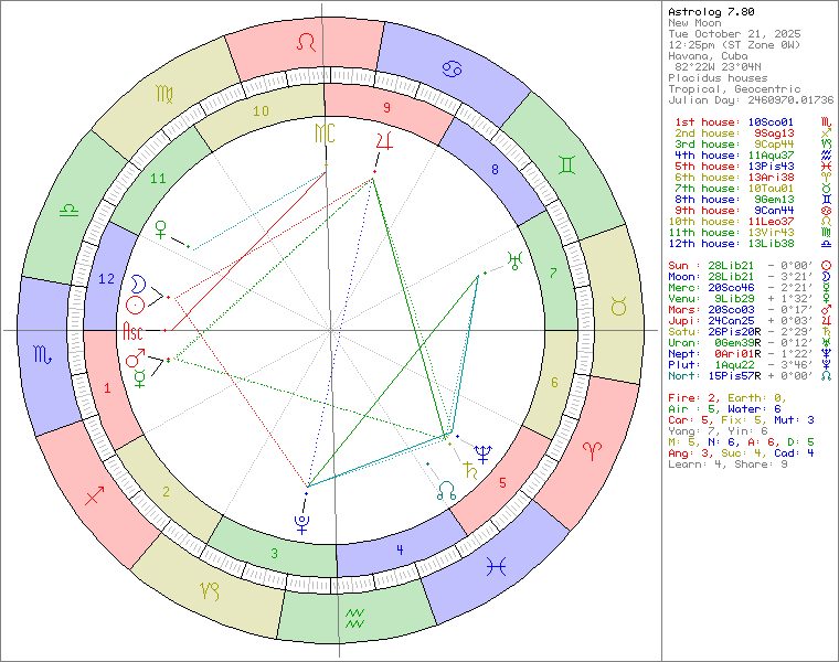 New Moon chart for Havana, Cuba longitude/ latitude. Sun/Moon at 28°.