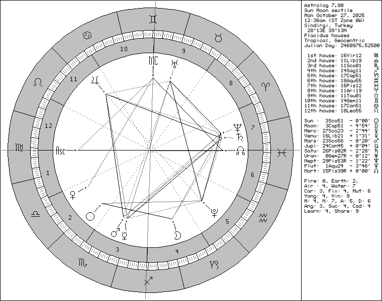 Moon sextile Sun chart for Sındırgı longitutude/latitude.