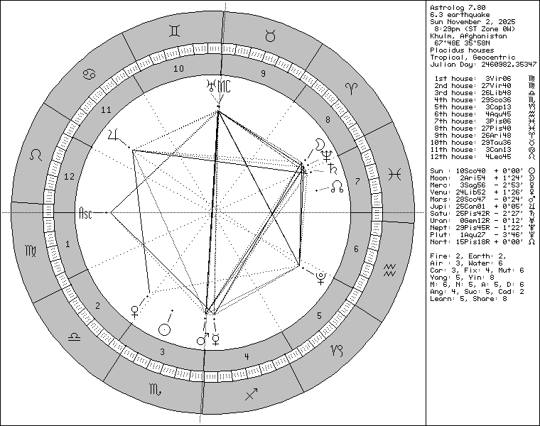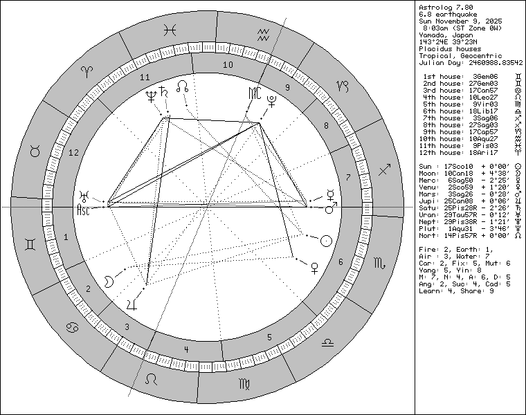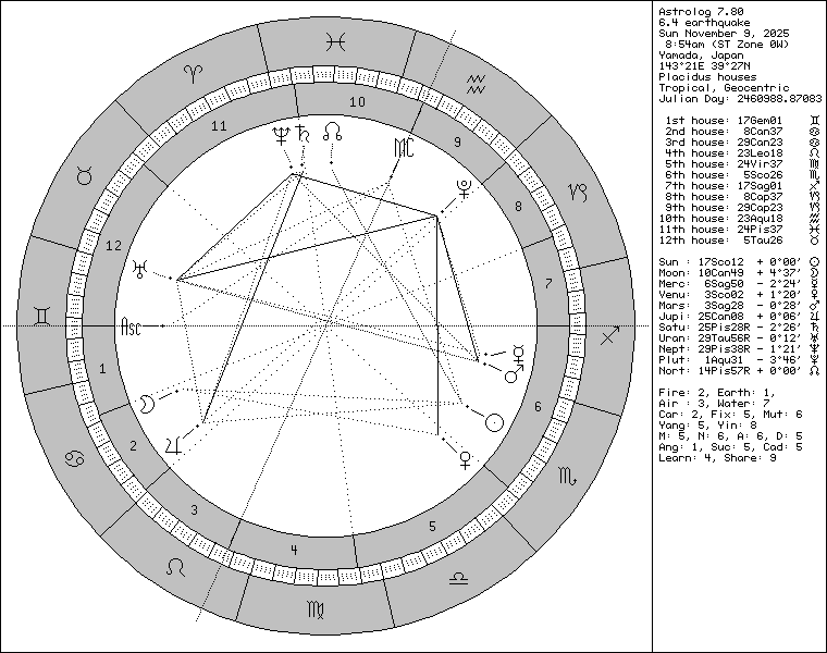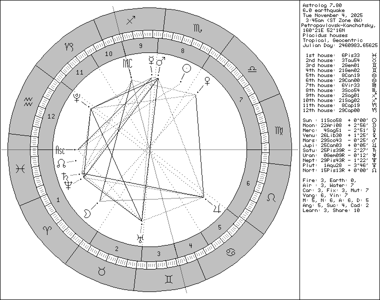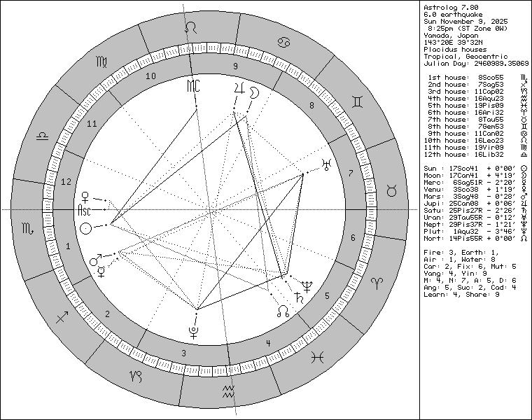 Earthquake predictive Sun/Moon chart criteria as of November 1, 2025: