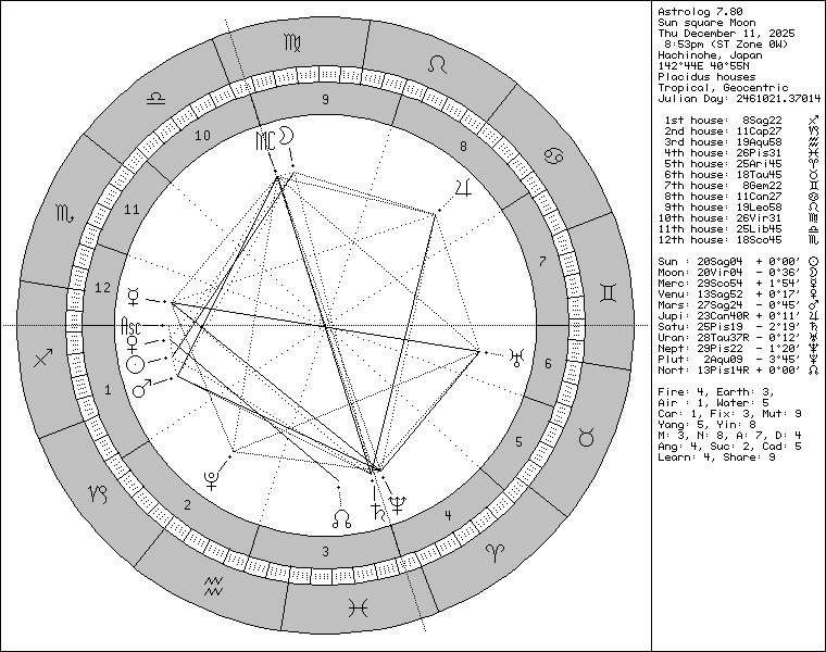 Sun square Moon chart for Hachinohe longitude/latitude.