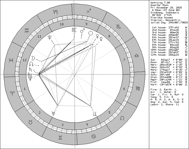 Quarter Moon chart for Sinabang, Indonesia longitude/latitude.